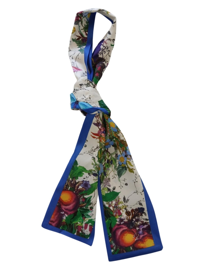 Trendy smal sjaaltje voor dames met een speelse twist. Dit veelzijdige accessoire heeft aan de ene kant een vrolijke bloemenprint en aan de andere kant een stijlvolle ruit/diamond print, zo wissel je makkelijk van look.Draag â??m om je nek, in je haar, aan je tas of door de lussen van je jeans als riem voor een trendy touch. Afmetingen 8 x 120 cm.
