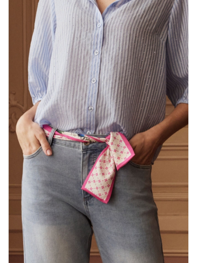 Trendy smal sjaaltje voor dames met een speelse twist. Dit veelzijdige accessoire heeft aan de ene kant een vrolijke bloemenprint en aan de andere kant een stijlvolle ruit/diamond print â?? zo wissel je makkelijk van look.Draag â??m om je nek, in je haar, aan je tas of door de lussen van je jeans als riem voor een trendy touch.