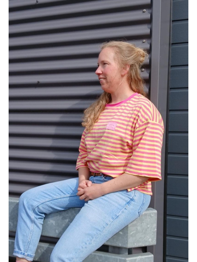 De streepshirt trend, met name de tijdloze Bretonse streep is een blijvende modeklassieker die in 2026 centraal staat. Laten wij nou net deze te leuke variant hebben met vrolijke voorjaarskleurtjes! Let op, dit is een one size fits all. Afmetingen van links naar rechts onder de oksel gemeten 60 cm.