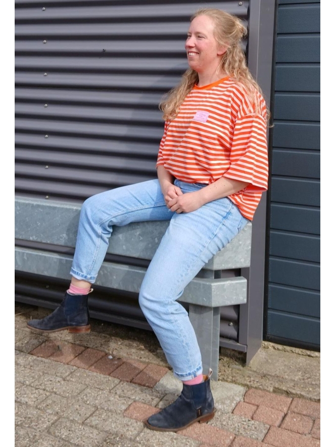 De streepshirt trend, met name de tijdloze Bretonse streep is een blijvende modeklassieker die in 2026 centraal staat. Laten wij nou net deze te leuke variant hebben met vrolijke voorjaarskleurtjes! Let op, dit is een one size fits all. Afmetingen van links naar rechts onder de oksel gemeten 60 cm.