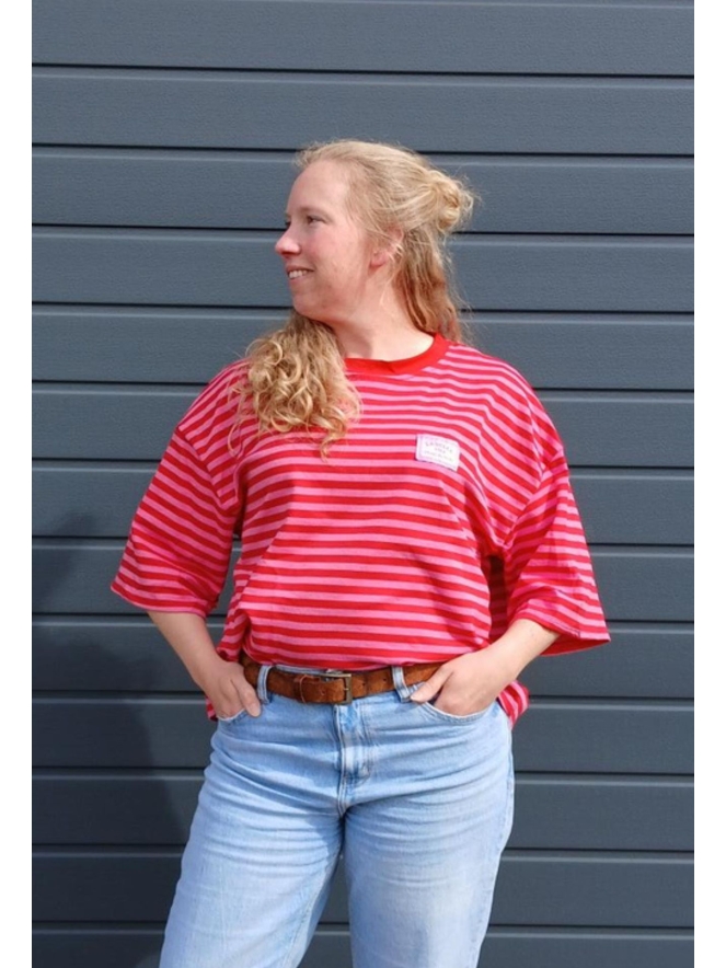 De streepshirt trend, met name de tijdloze Bretonse streep is een blijvende modeklassieker die in 2026 centraal staat. Laten wij nou net deze te leuke variant hebben met vrolijke voorjaarskleurtjes! Let op, dit is een one size fits all. Afmetingen van links naar rechts onder de oksel gemeten 60 cm.