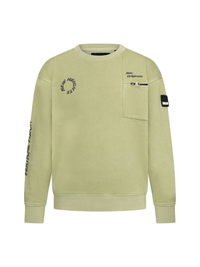 Mooie sweater met veel prints op de voorkant, mouw en op de rug. De sweater heeft een beetje een gewassen look en heeft ook nog een ritszakje op de borst. Voor de casual look draag je hem op een jeans, hou je meer van sportief? Hij doet het ook prima op een comfortabel sweat broekje.
