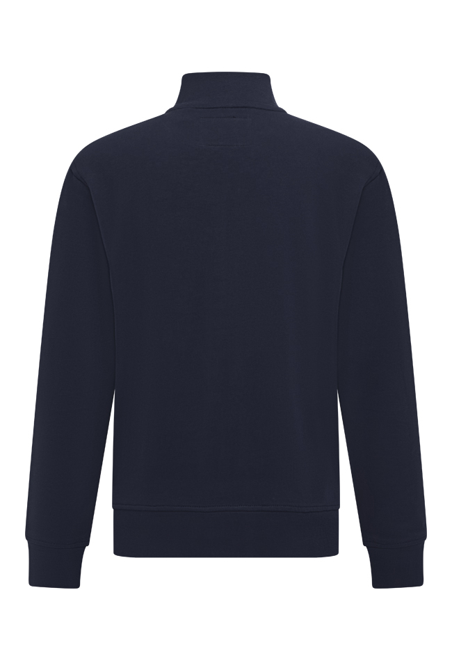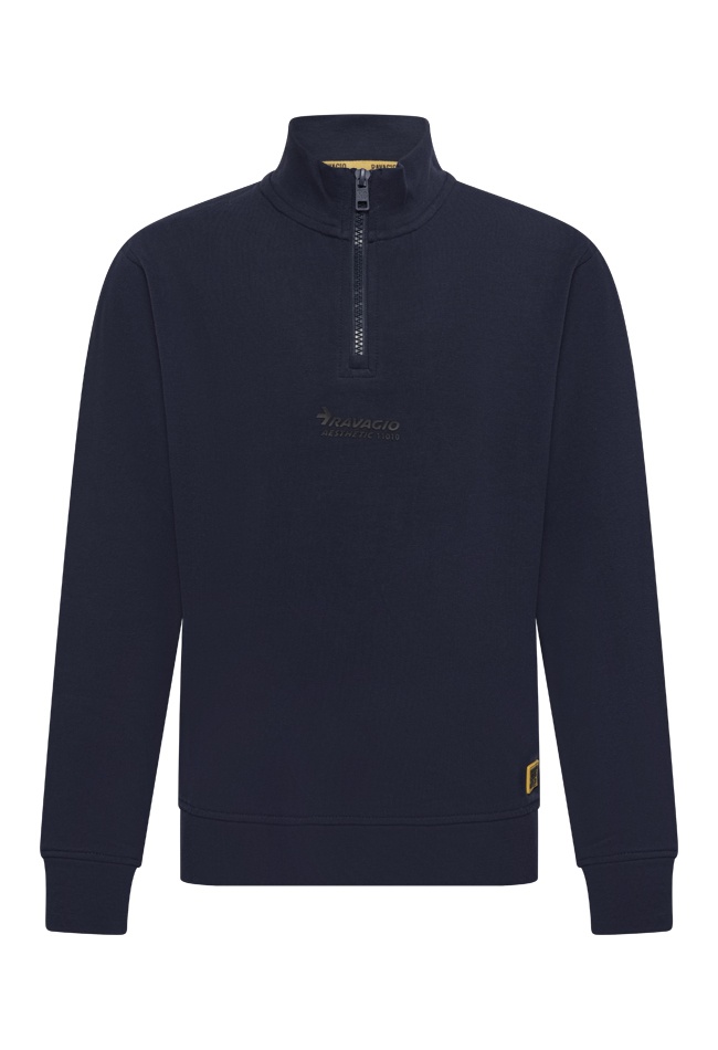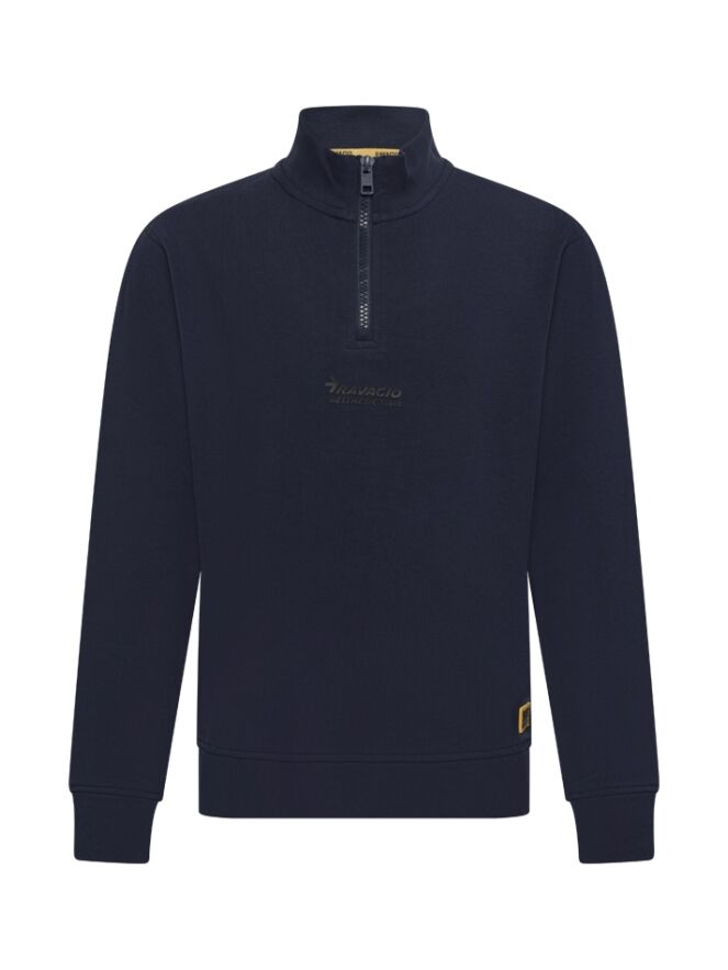 Is het een sweater of een vest? Wat ons betreft kan het beide! Dit sweater vest met een kleine rits heeft een fijne opstaande kraag met een kleine logo print op de voorkant.