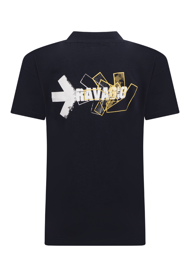 Fijn T-shirt met een opstaande hals die net wat warmer afkleed dan een zomers shirt! Dit shirt heeft een grote print op de rug en een kleintje voorop. Draagt leuk onder een shacket of overshirt.