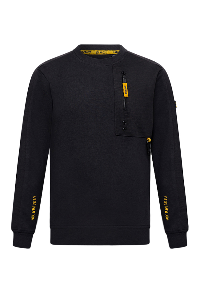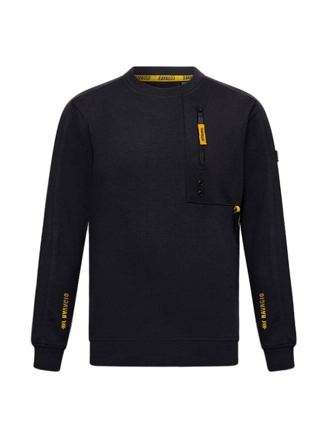 Deze stoere dunnen sweater met ritszakje en meer leuke details laat zich goed combineren op zowel jeans als comfortabele sweatbroeken.