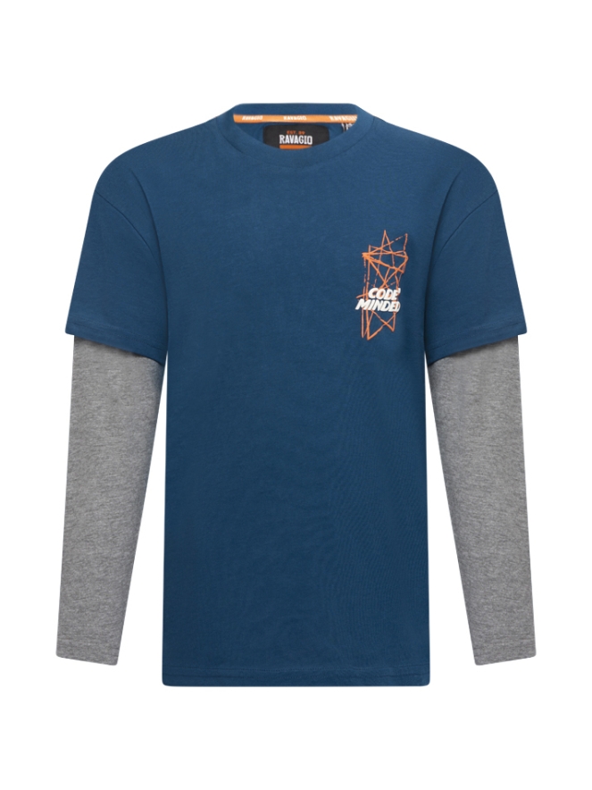 Weer zo'n stoer shirt van Ravagio met lange mouw. Dit shirt heeft een grote print op de rug en een kleintje voorop.