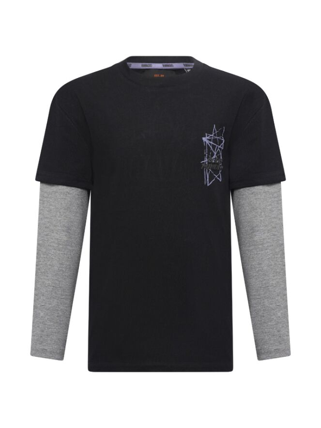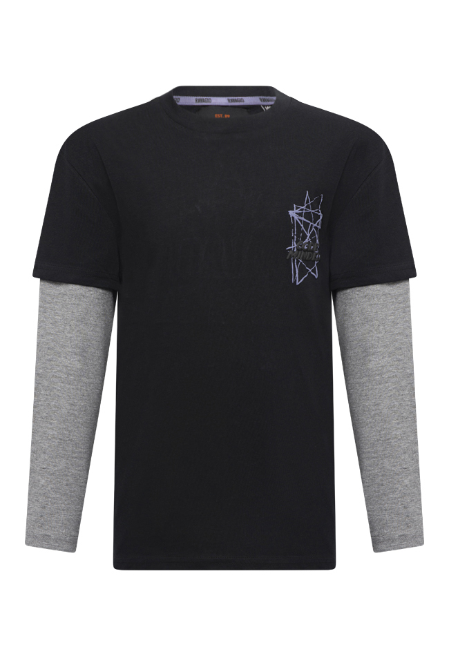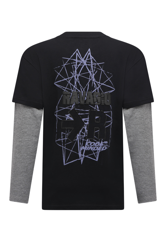 Weer zo'n stoer shirt van Ravagio met lange mouw. Dit shirt heeft een grote print op de rug en een kleintje voorop.