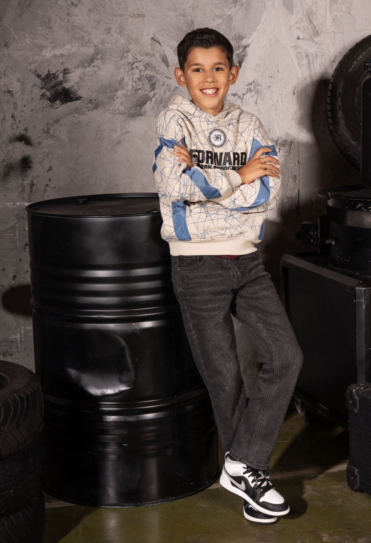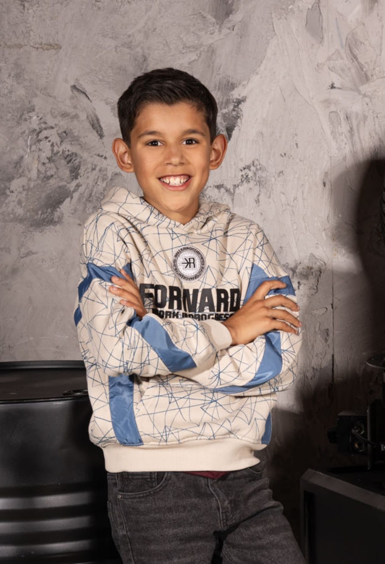 Cool en comfy met een edgy twist. Deze jongens hoodie combineert zachte sweatstof met een opvallend grafisch dessin en stoere geweven banen. Met een capuchon voor extra comfort en een urban look die perfect is voor school, sport of chillen met vrienden.