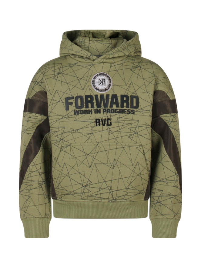 Cool en comfy met een edgy twist. Deze jongens hoodie combineert zachte sweatstof met een opvallend grafisch dessin en stoere geweven banen. Met een capuchon voor extra comfort en een urban look die perfect is voor school, sport of chillen met vrienden.