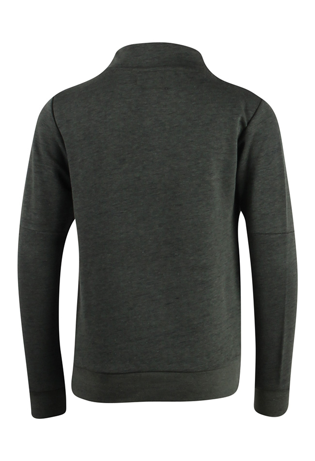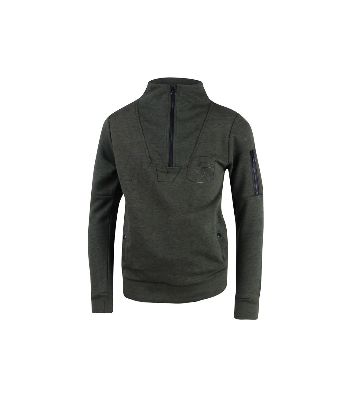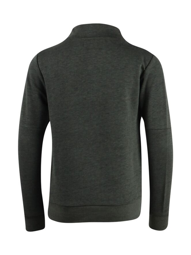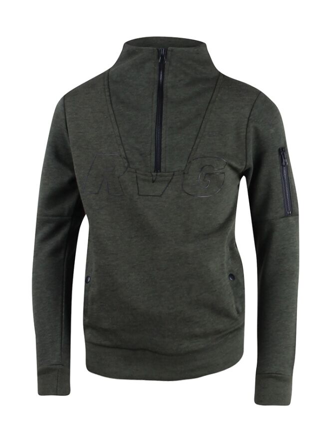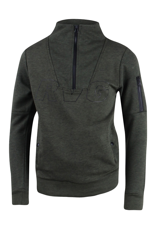 Trui van Ravagio. De trui heeft een rits bij de hals en op een van de mouwen. Er zit een zak op de voorkant. De trui heeft een hoge col. Materiaal: 65% polyester, 35% katoen. Wassen op 30 graden, niet bleken, niet in de droger, kan gestreken worden.