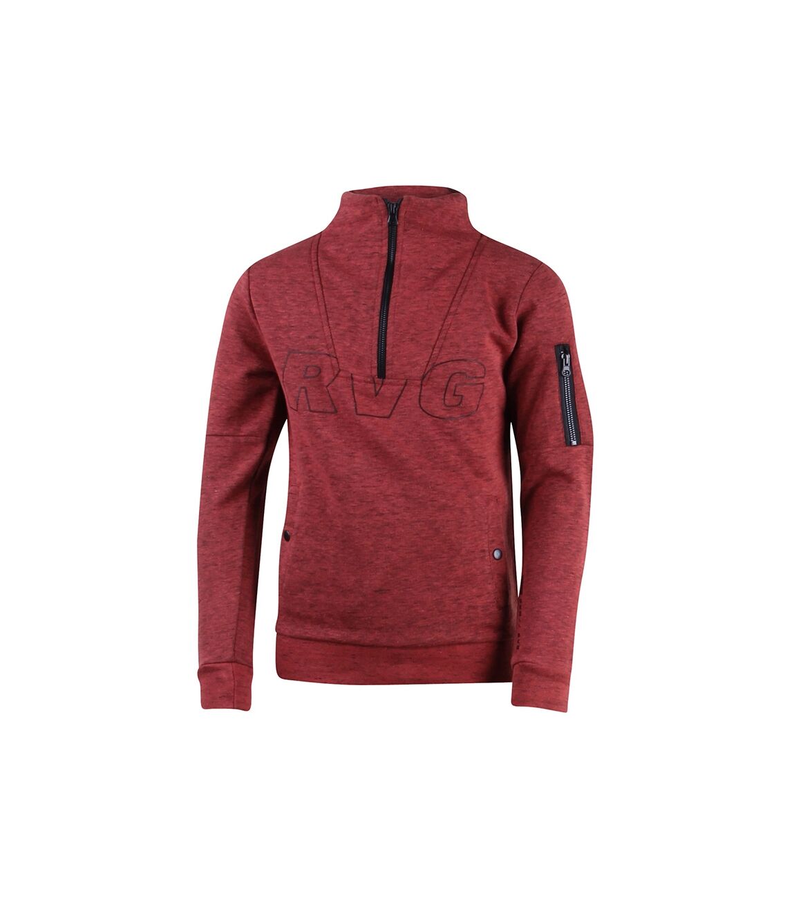 Trui van Ravagio. De trui heeft een rits bij de hals en op een van de mouwen. Er zit een zak op de voorkant. De trui heeft een hoge col. Materiaal: 65% polyester, 35% katoen. Wassen op 30 graden, niet bleken, niet in de droger, kan gestreken worden.