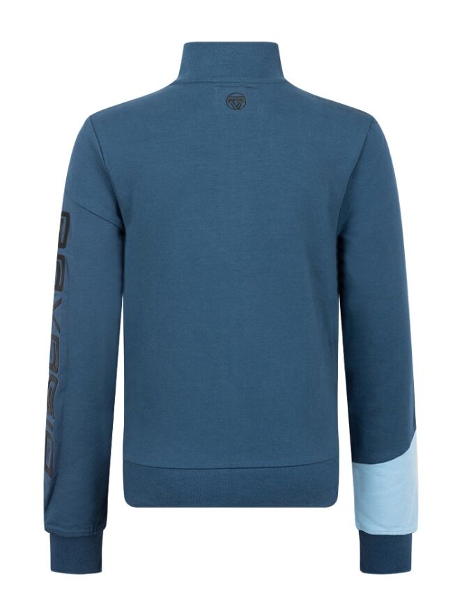 Dit vest heeft een getapte rits, twee ritszakken en diverse details zoals een gekleurde halve baan over de borst. Sierbies tot halverwege een mouw en logoprints.