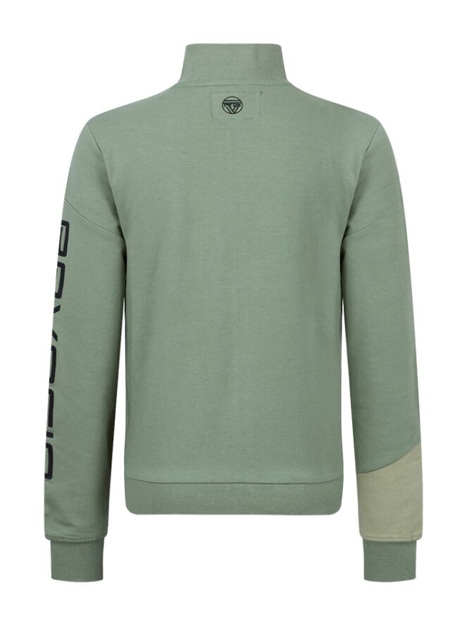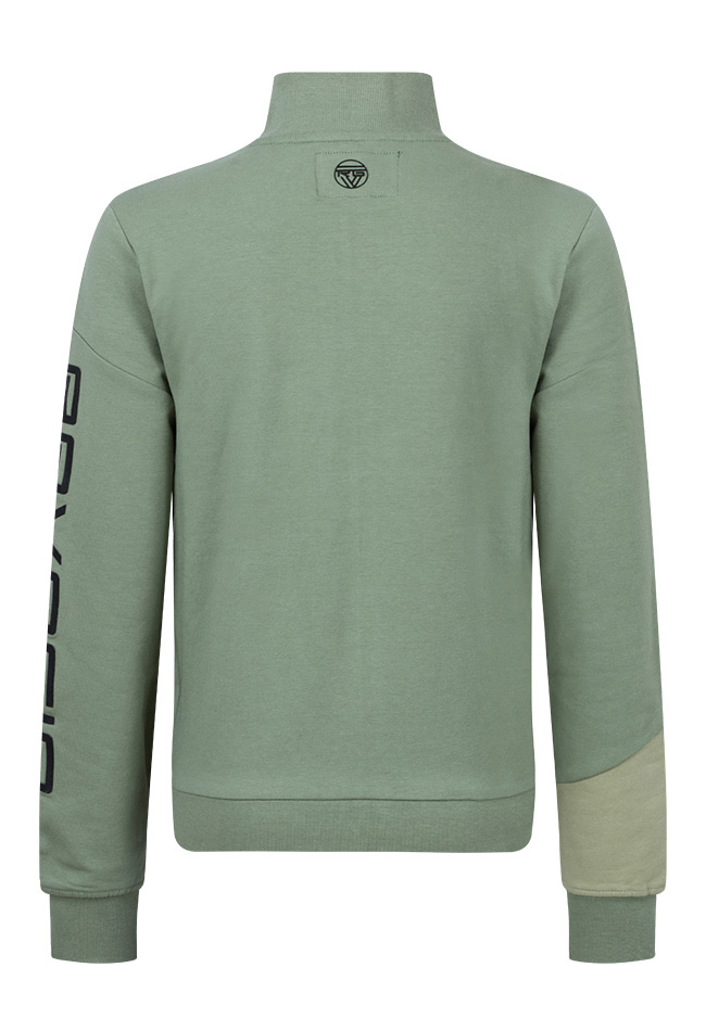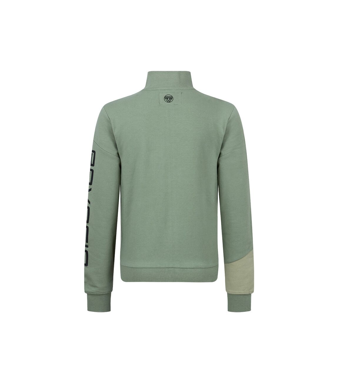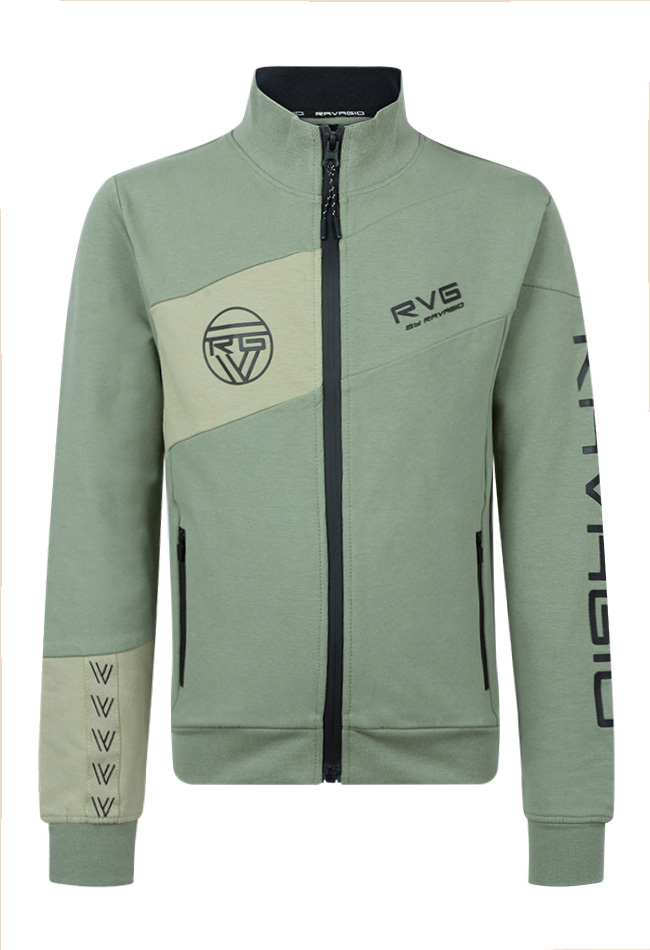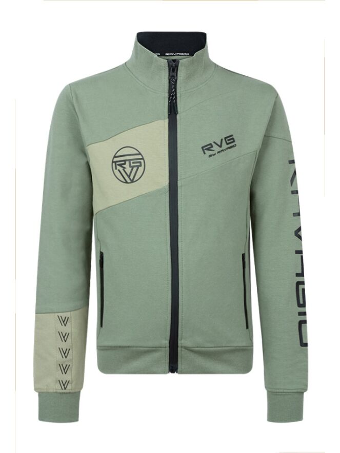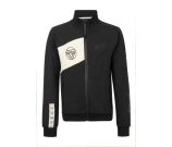 Dit vest heeft een getapte rits, twee ritszakken en diverse details zoals een gekleurde halve baan over de borst. Sierbies tot halverwege een mouw en logoprints.
