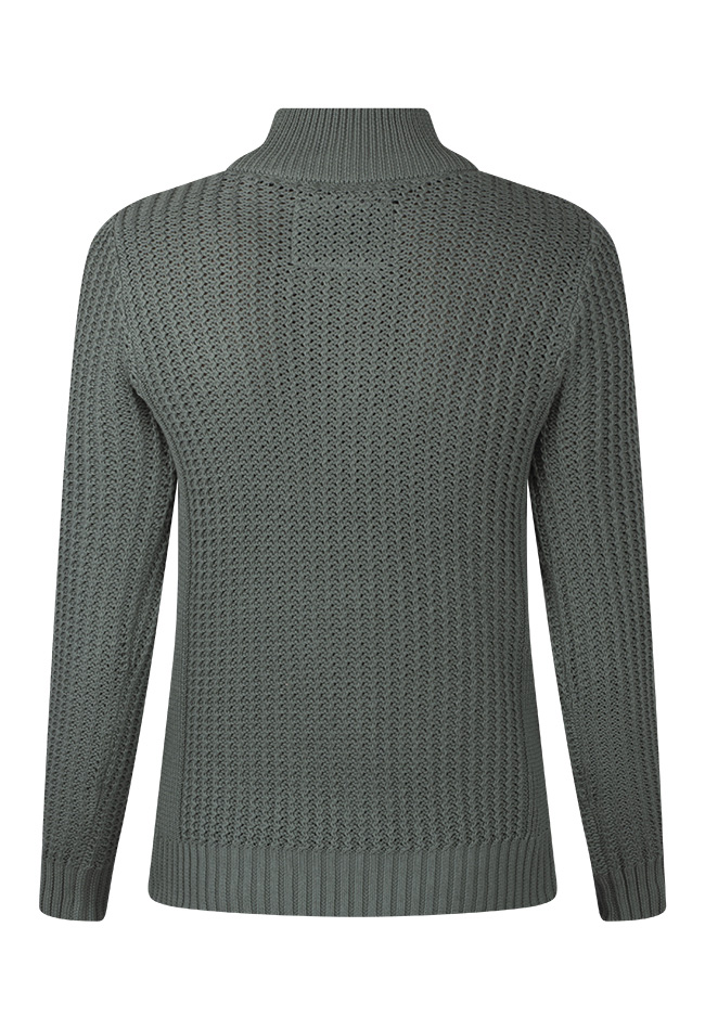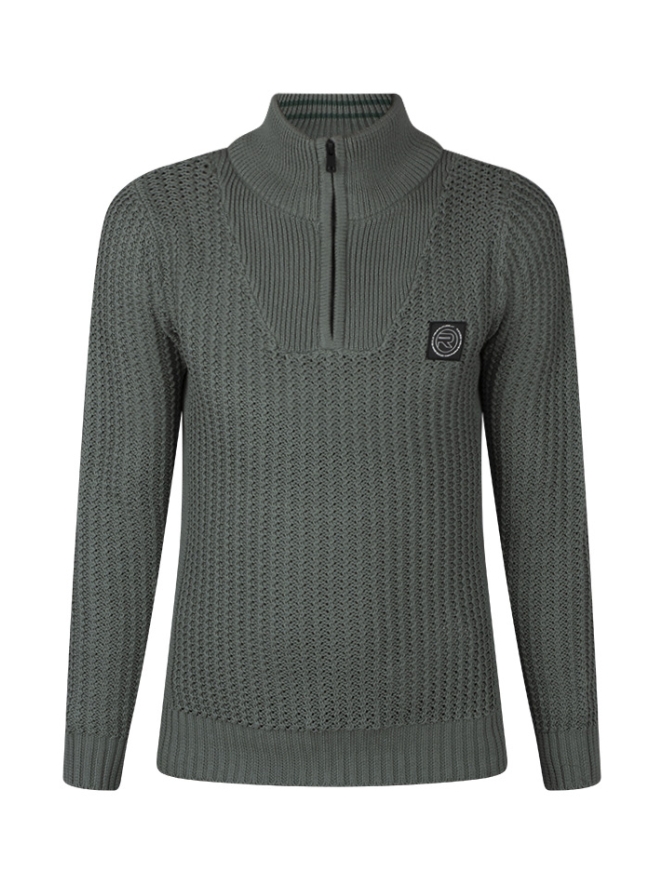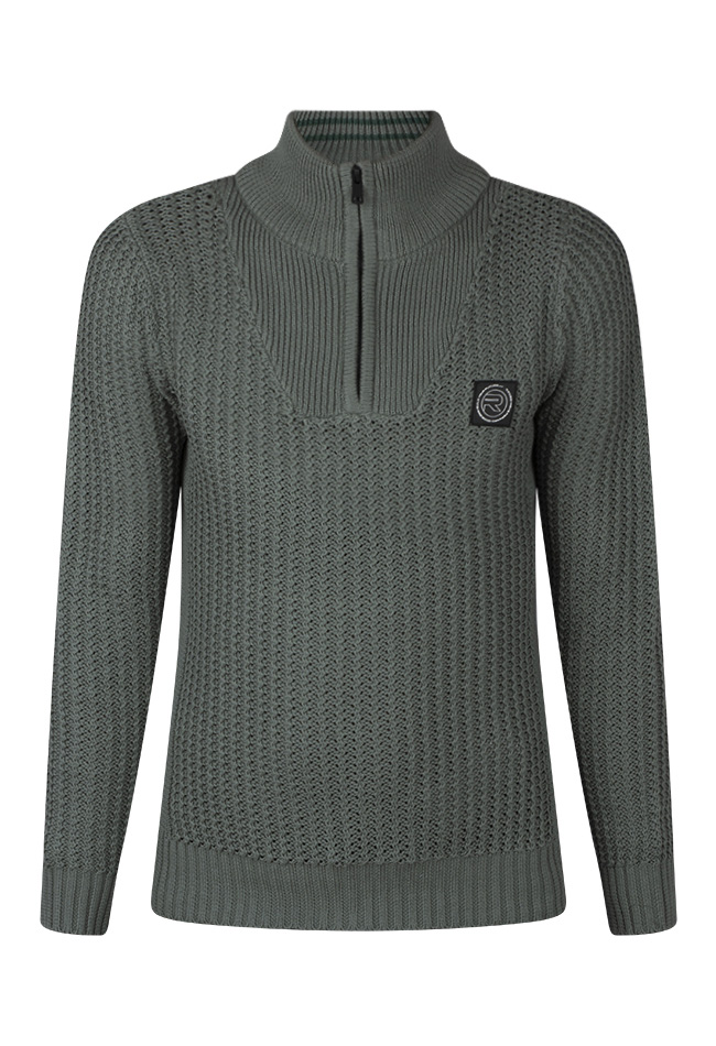 Stoere trui voor jongens met schipperskraag en een badge op de linker borst. Deze trui is grof gebreid en heeft gebreide boorden aan de mouwen en taille.