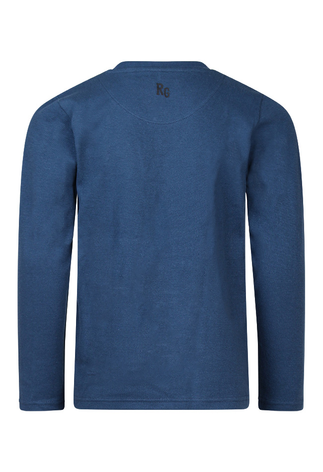 Jongens shirt met lange mouw. Dit shirt heeft op de linker borst een klep zak en op de linker mouw een bescheiden tekst print.
