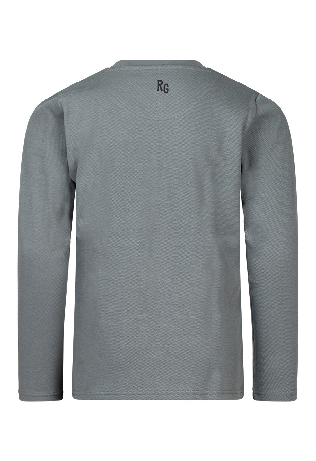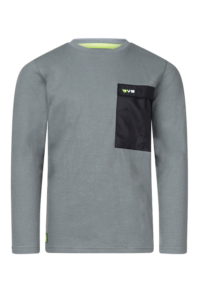 Jongens shirt met lange mouw. Dit shirt heeft op de linker borst een klep zak en op de linker mouw een bescheiden tekst print.