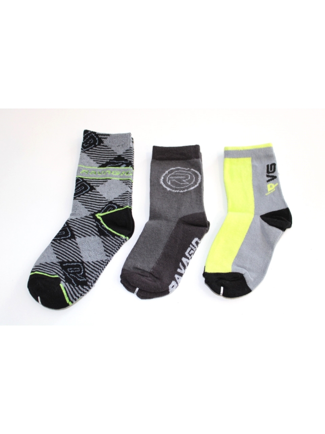 Sokken voor jongens verpakt per 3. 1 ruitsok en twee met kleine logo.