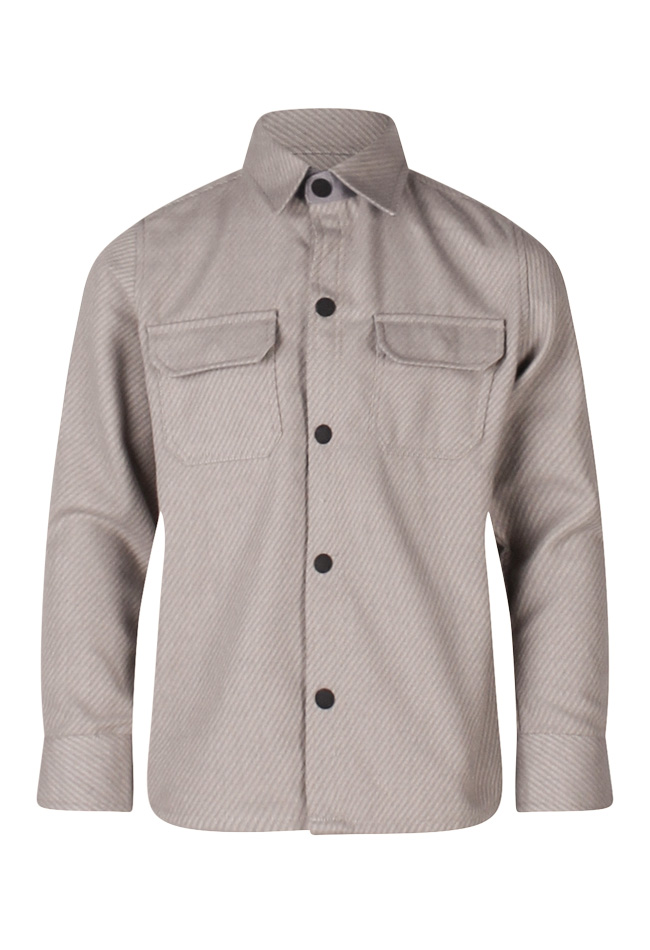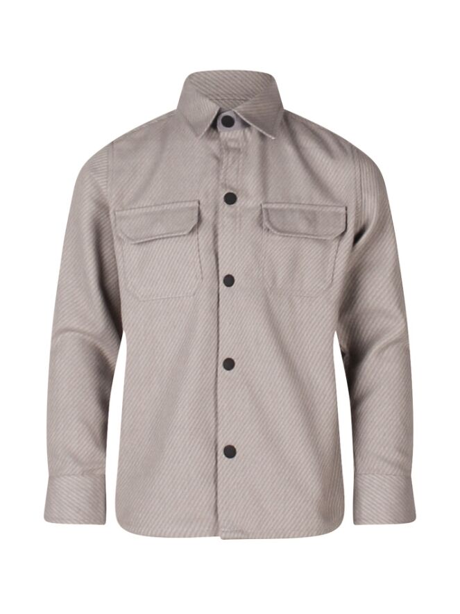 Stoer jack voor jongens in een overhemd model. Het jack wordt gesloten met drukknopen, heeft twee klepzakken op borst hoogte en op de mouw zit nog een embleem.