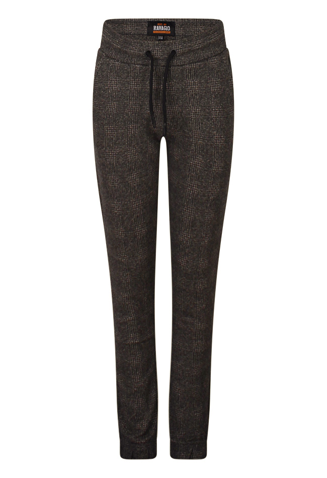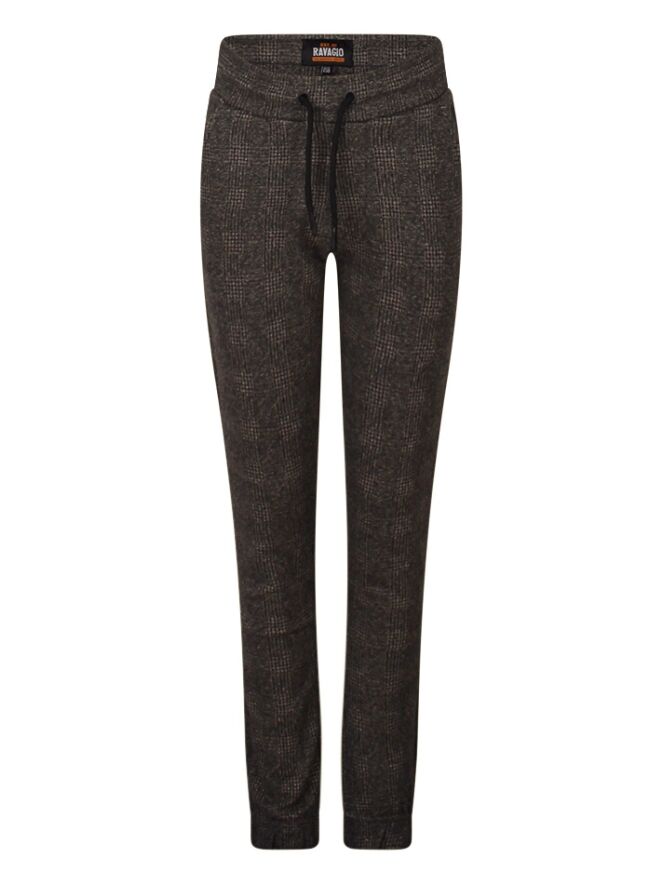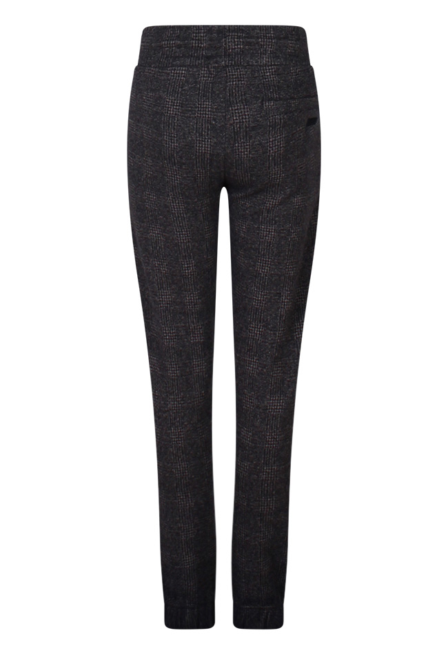 Jacquard joggingbroek met ruit/visgraat print, elastiek onder in de pijp en elastische tailleband met koord.