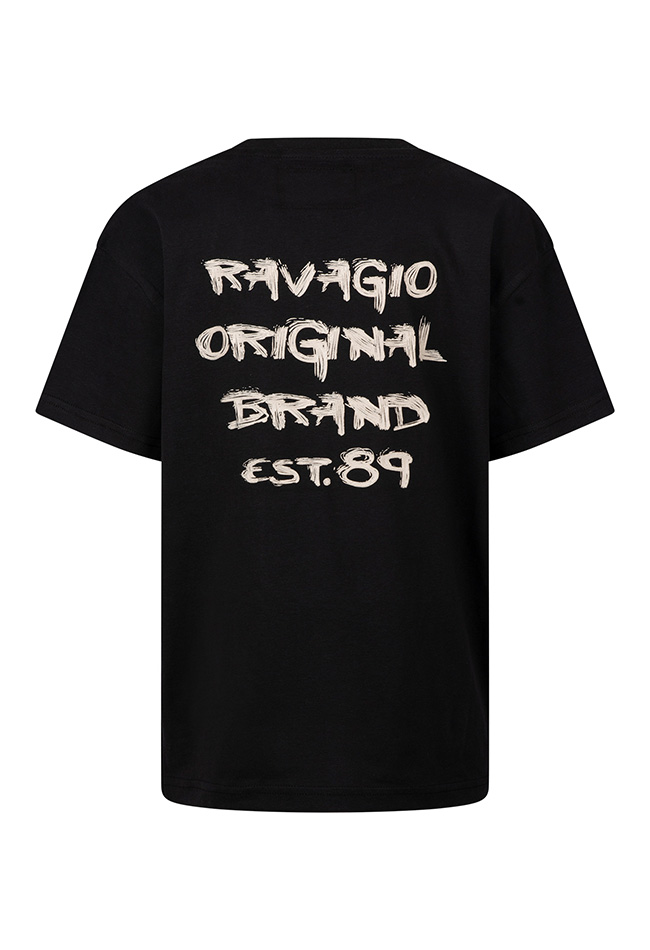Een must-have basic voor de garderobe van elke jongen. Stoer, comfortabel en perfect voor elke dag. Dit jongens T-shirt heeft een moderne look met een opvallende tekstprint op de rug: Ravagio Original Brand Est. 89. De print geeft het shirt een sportieve en streetstyle uitstraling, waardoor het makkelijk te combineren is met jeans, shorts of een joggingbroek.
