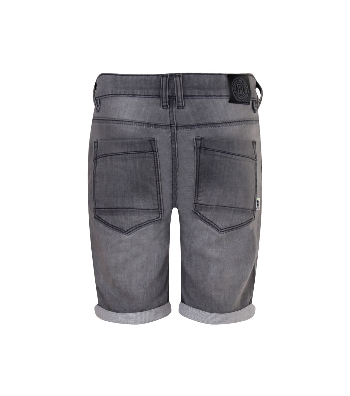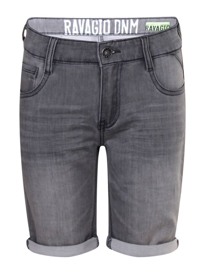5-pocket sweatdenim short met een omslag aan de onderkant. In de elastische tailleband zit een elastiek om de taille strakker te maken