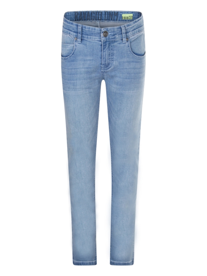 Deze fivepocket jeans heeft in de taille een elastiek om de taille strakker te maken. De jeans heeft een knoop/rits sluiting en is slim fit model. De broek is gemaakt van rekbare stof voor meer comfort.