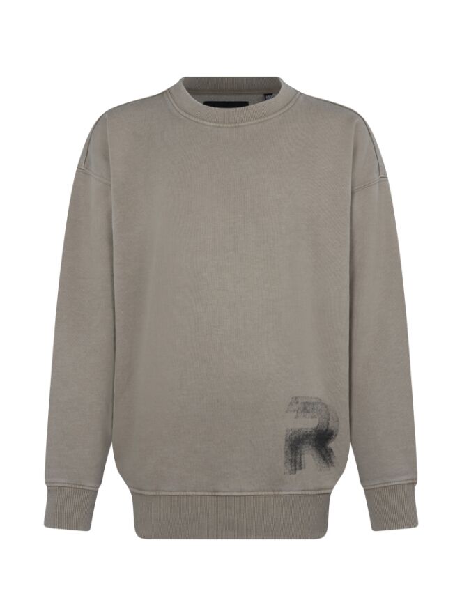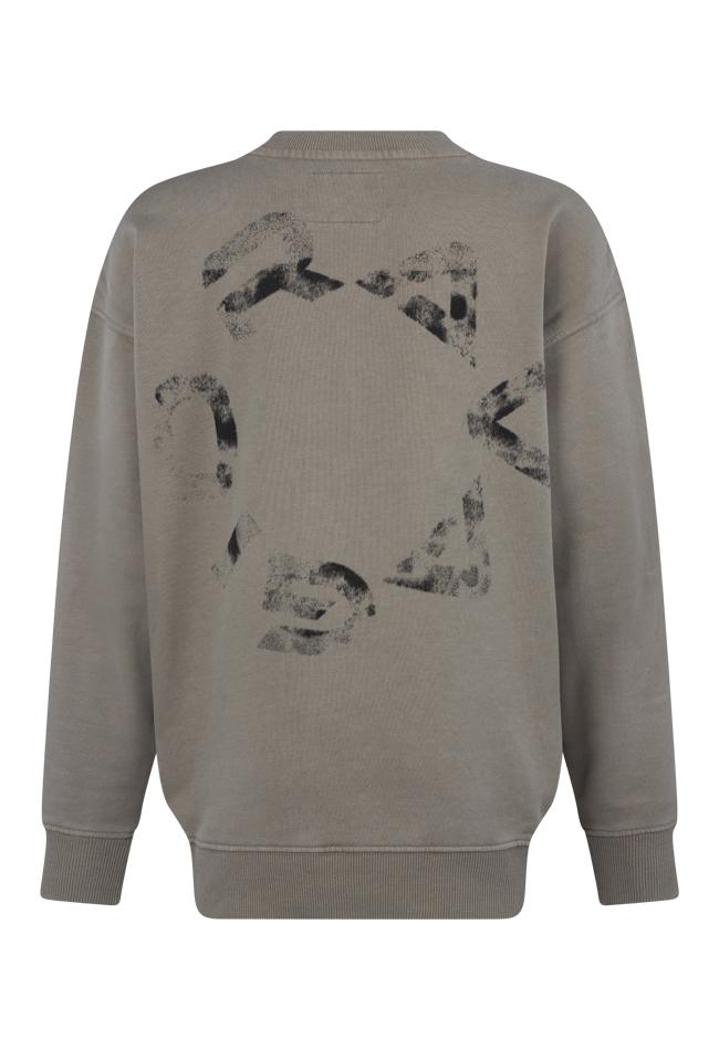 Deze stoere sweater met vervaagde acid wash heeft zowel voor als achterop een vervaagde print.