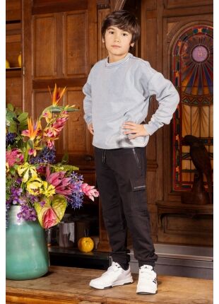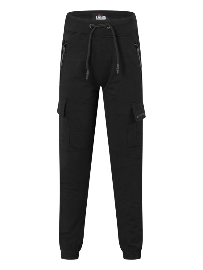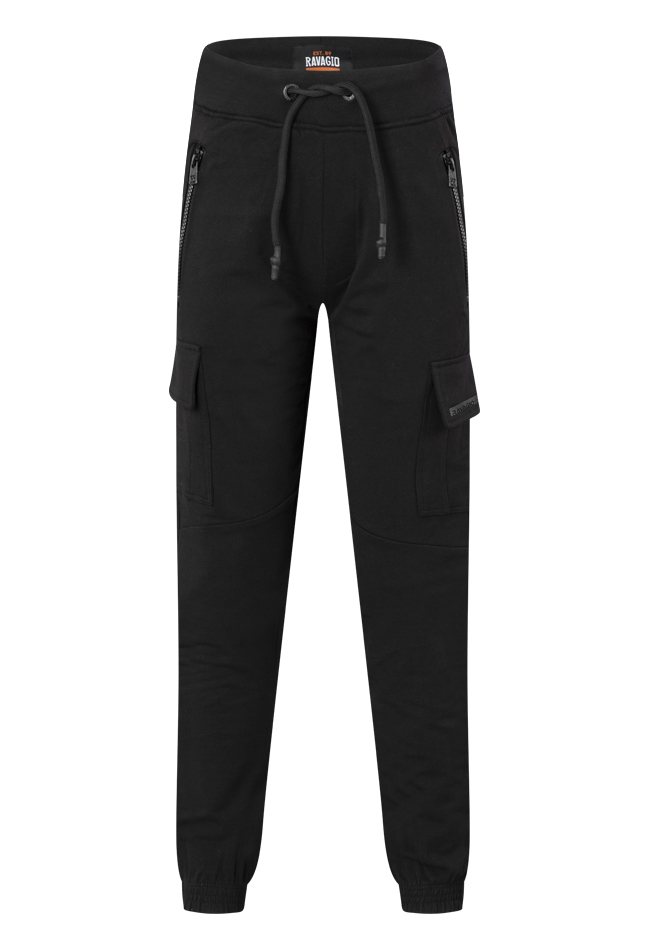 Sportieve sweat broeken met cargo zakken. Deze broek heeft ritszakken en twee sier paspelzakken achterop.