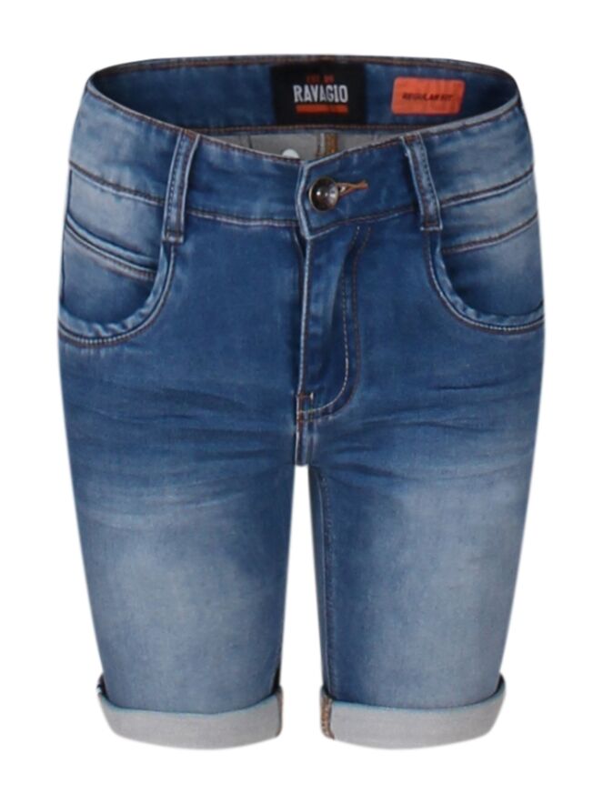 Deze Ravagio korte sweatdenim broek combineert het stoere uiterlijk van denim met het comfort van sweatstof. Gemaakt van 85% katoen, 14% polyester en 1% elastaan, biedt de broek voldoende stretch en bewegingsvrijheid, perfect voor actieve jongens. De 5-pocket stijl en opgerolde omslag geven de broek een trendy uitstraling. Dankzij de rits- en schuifknoopsluiting heeft de broek een stevige pasvorm, terwijl de verstelbare taille zorgt voor een makkelijk aanpasbare pasvorm. De regular fit maakt hem ideaal om te combineren met elke zomerse outfit.