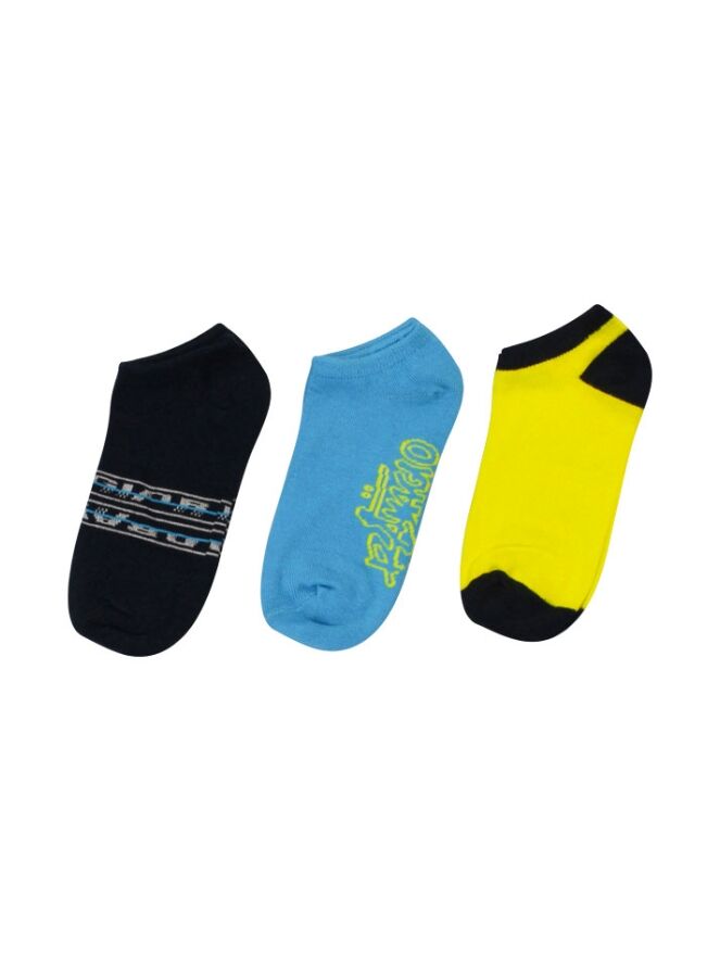 3-Pack enkel sneaker sokken. 2 Paar met tekstprint, 1 paar met gekleurde hiel en tenen.