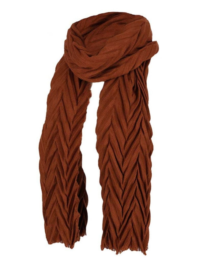 Deze fraaie sjaal heeft door de plisse zigzag een kreuk effect, is effen van kleur met een rafeltje aan de onderkant. Leuk te combineren met een blazer, sweater, noem maar op! Verkrijgbaar in vele kleurtjes. Deze sjaal heeft een afmeting van 70 x 200 cm.