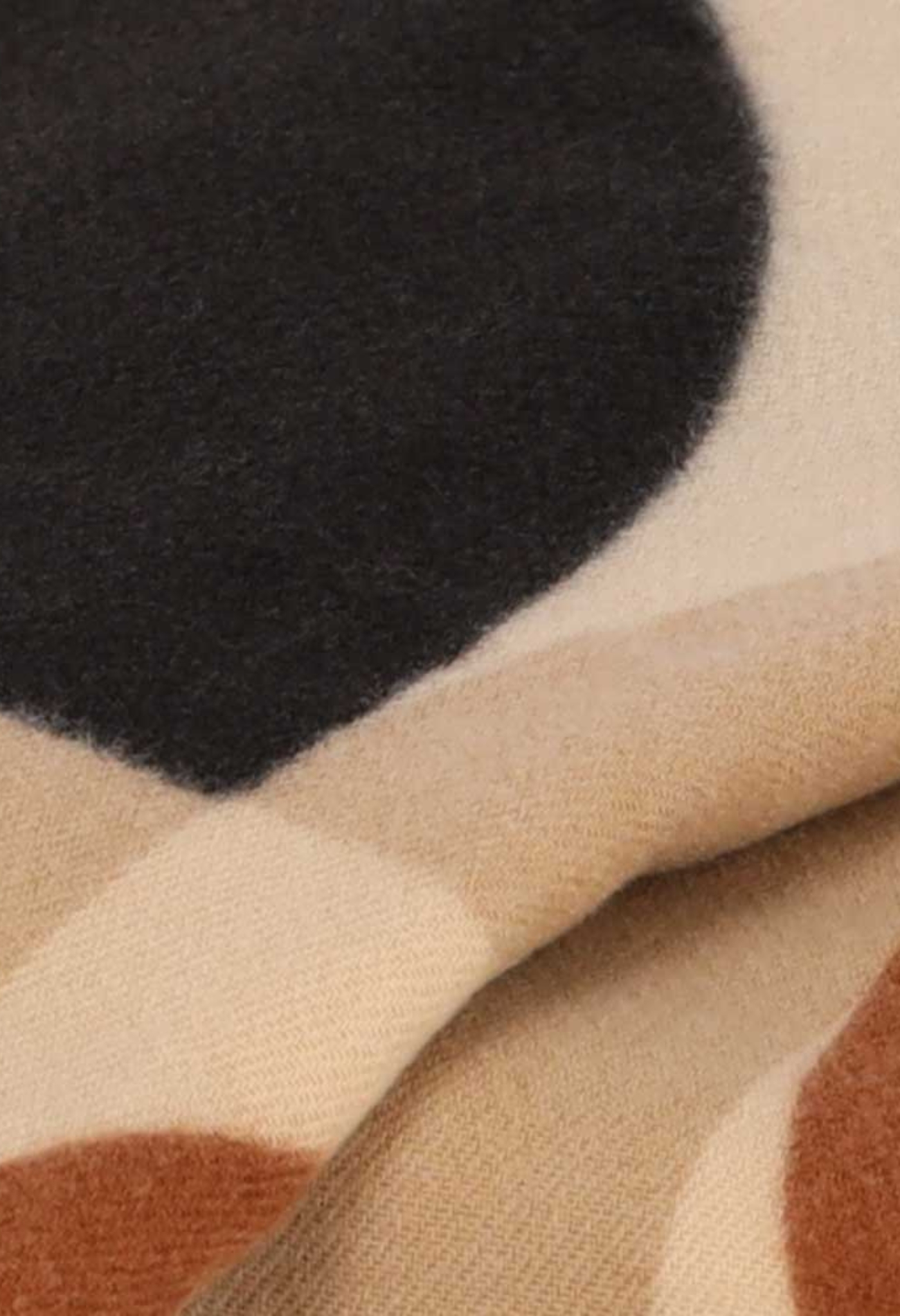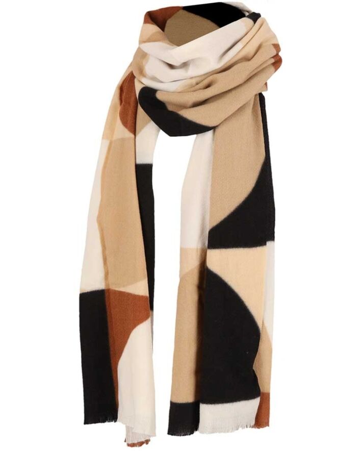 Deze sjaal in naturel tinten heeft een patroon met verschillende rondingen. Afmeting: 80 x 200 cm.
