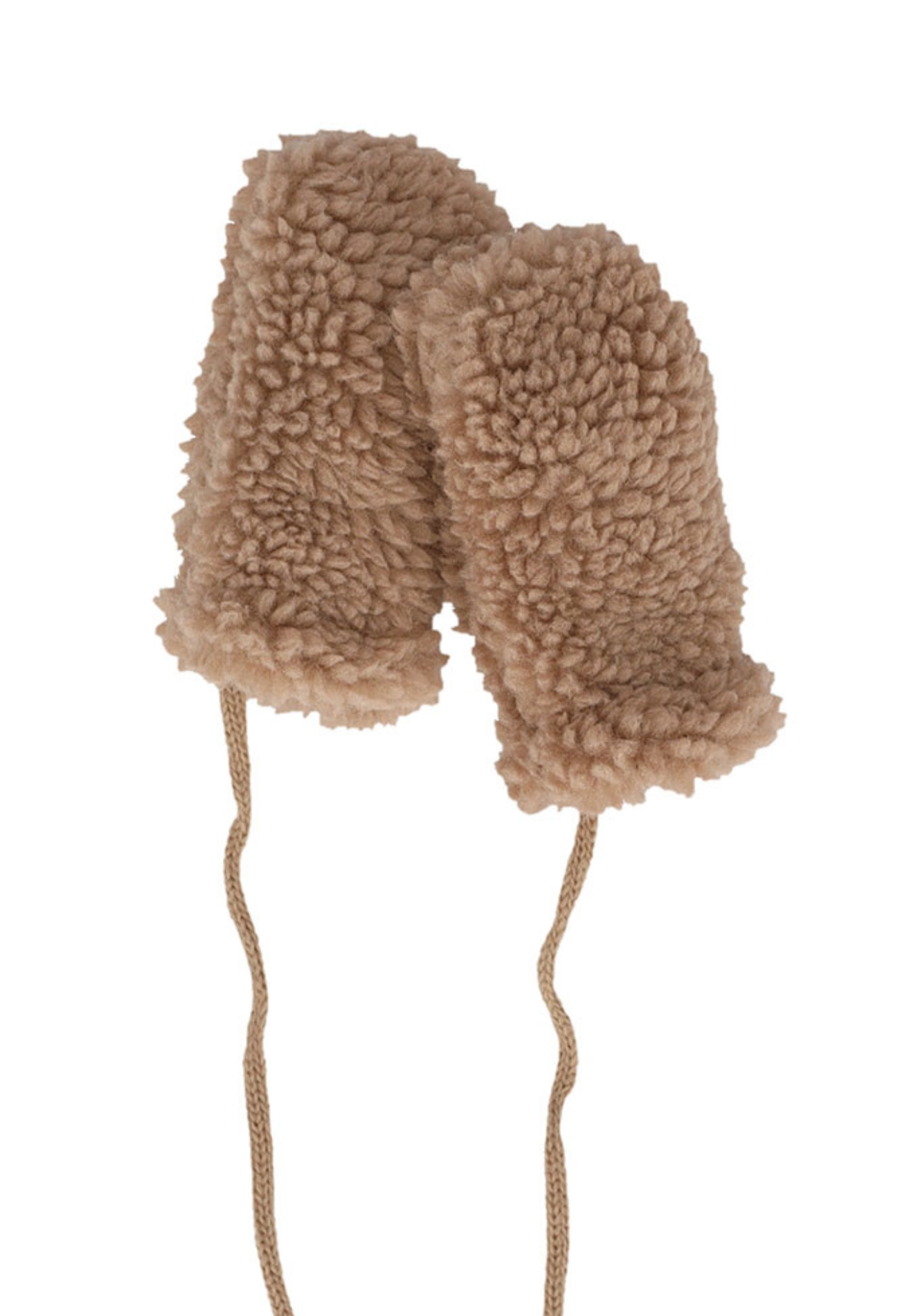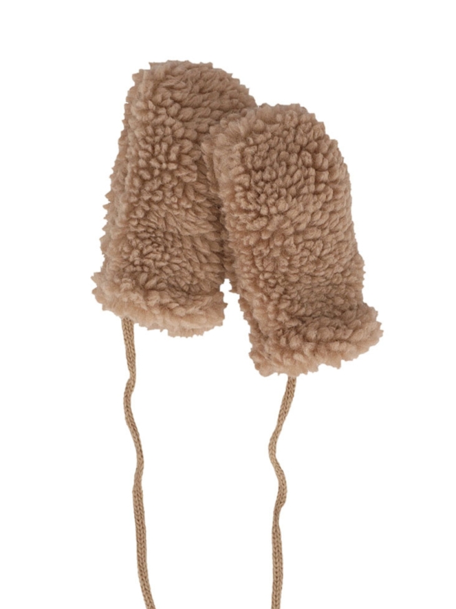 Fluffy wanten van teddy stof met een koordje om ze bij elkaar te houden.