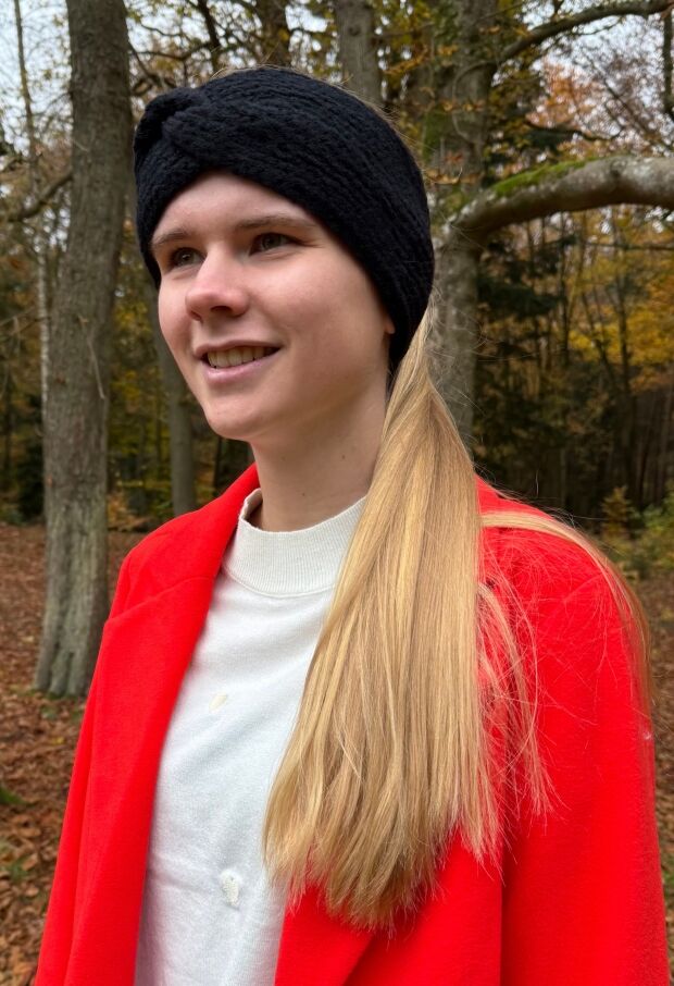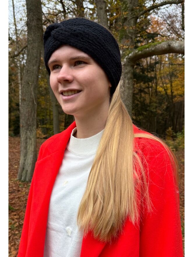 Gebreide haarband met een knoop aan de voorkant.