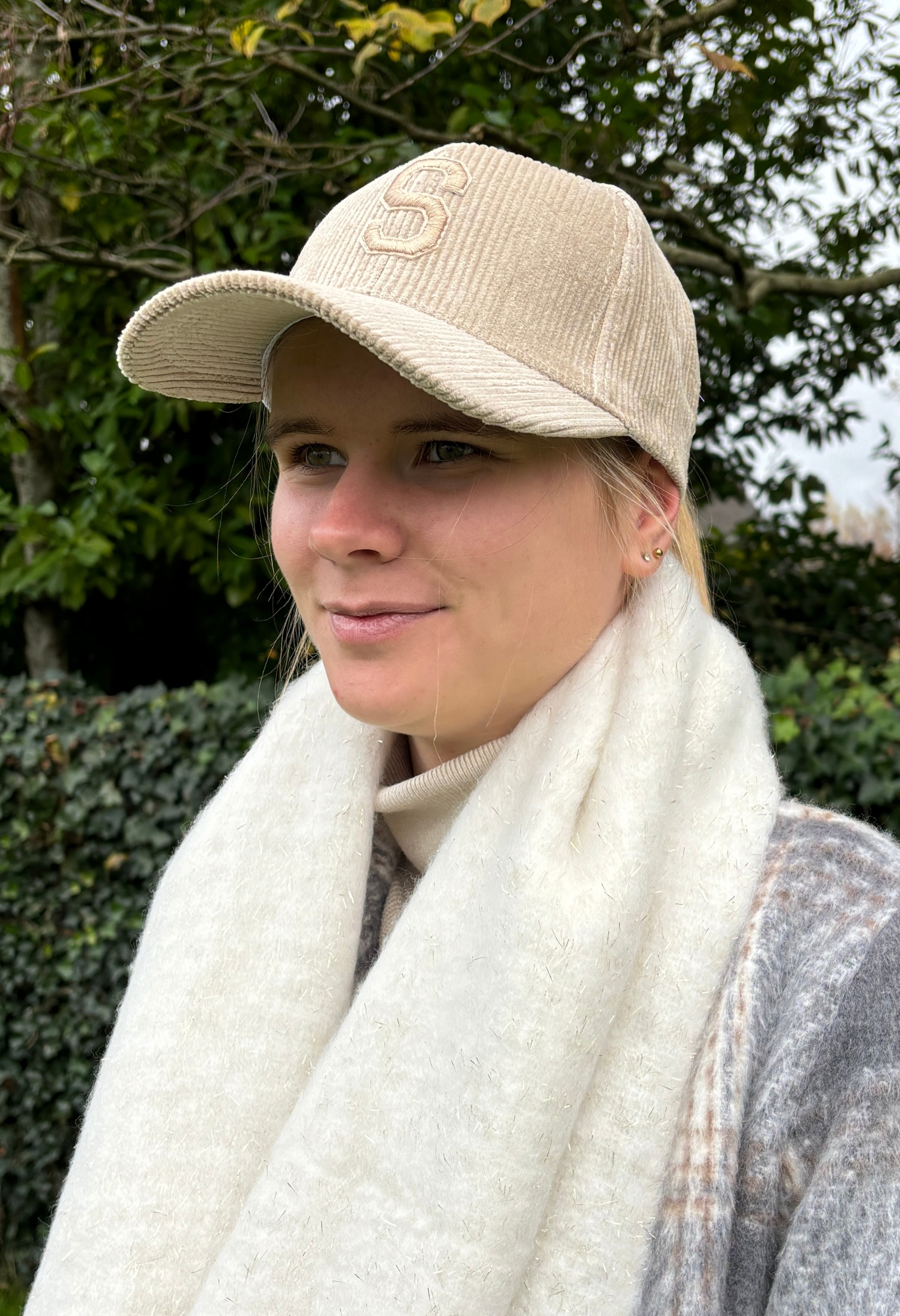 Fraaie ribcord pet met geborduurd embleem voorop.