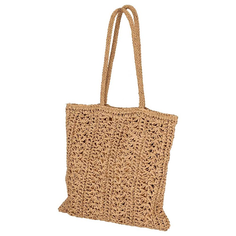 Deze zwarte gevlochten tas heeft een afmeting van 40 x 40 cm. De tas wordt aan de bovenkant gesloten met een rits.