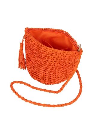 Gevlochten tas met binnen tas die kan worden gesloten met twee trektouwtjes.