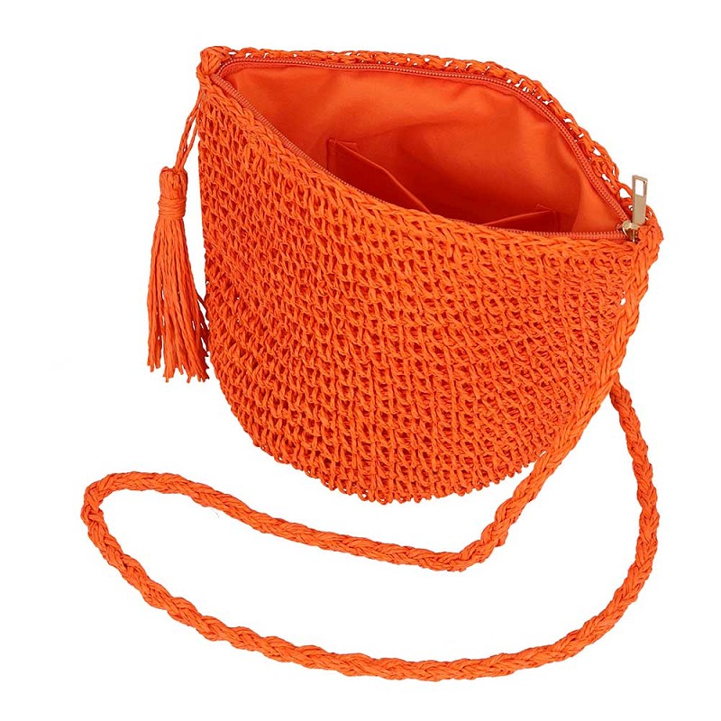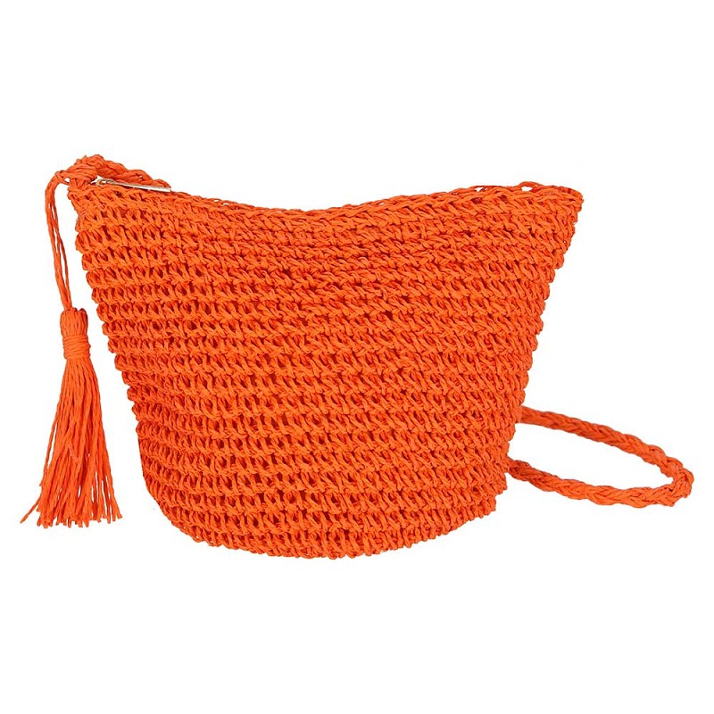 Kleine gevlochten heuptas van Sarlini. Deze tas kan gesloten worden met rits en heeft een schouderband.