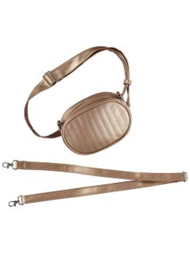 Deze tas van Sarlini kan zowel als heuptas of als schoudertas gedragen worden. Zowel de heup als schouderband kunnen er afgehaald worden.