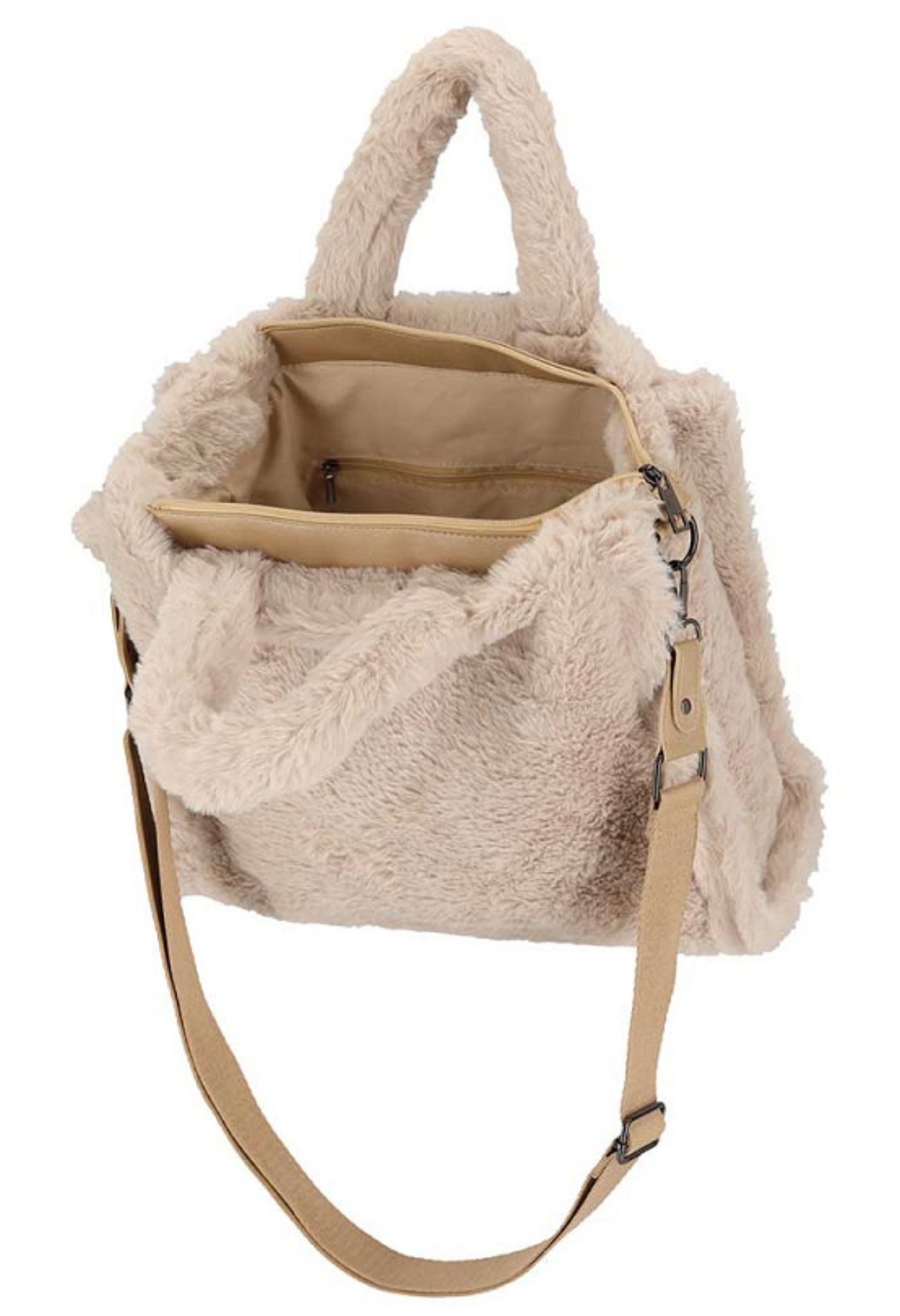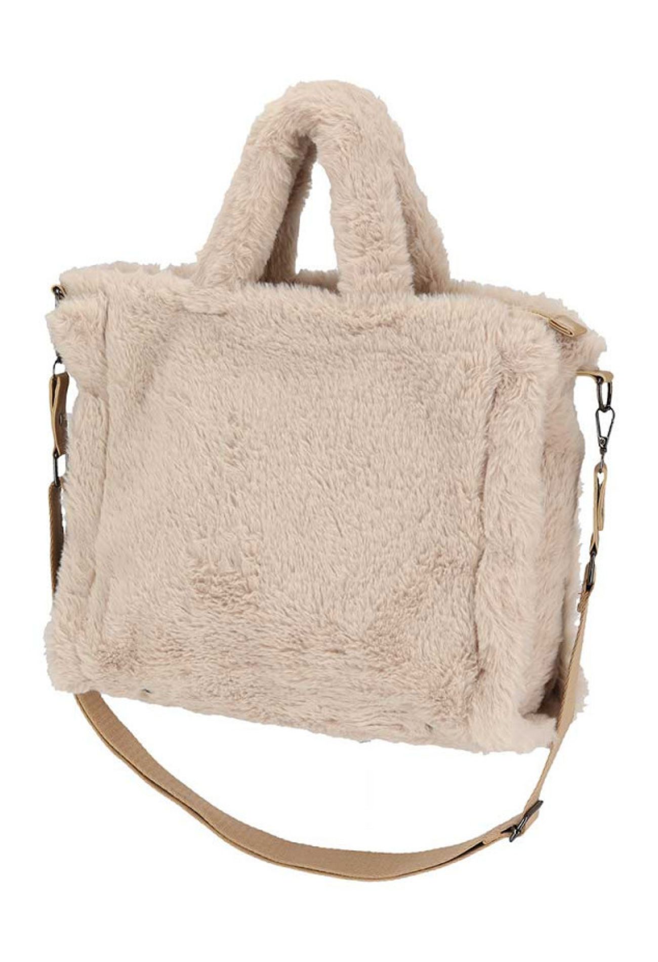 Een zachtere tas vind je niet. Hou je van fluffy teddy? Dan is dit jouw nieuwe favoriet! Deze tas heeft een afneembare schouderband, sluit af met rits n heeft ook nog een afsluitbaar vak aan de binnenkant. De afmetingen van deze tas zijn 35 x 13 x 30 cm.