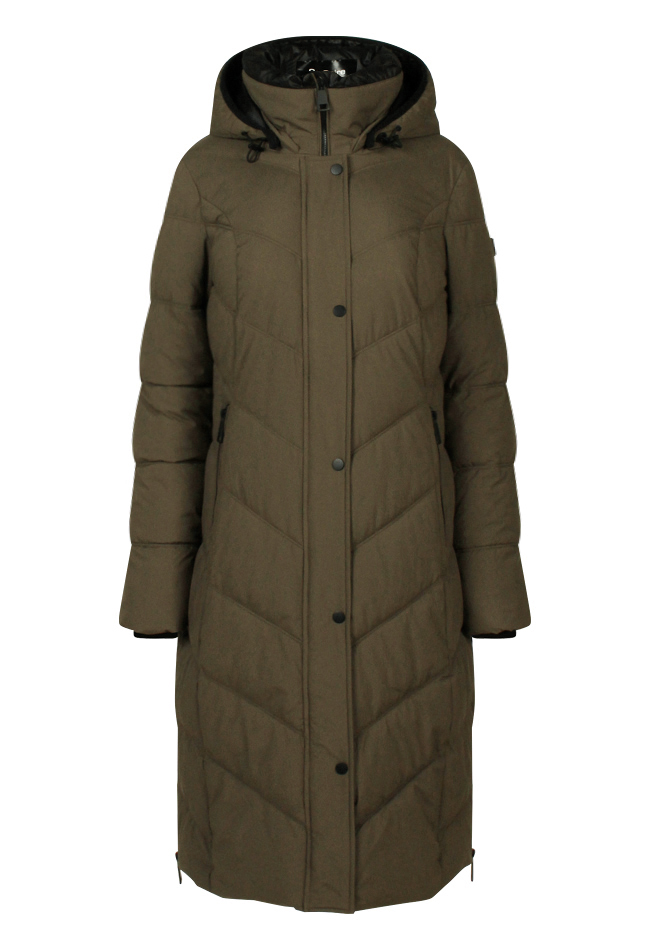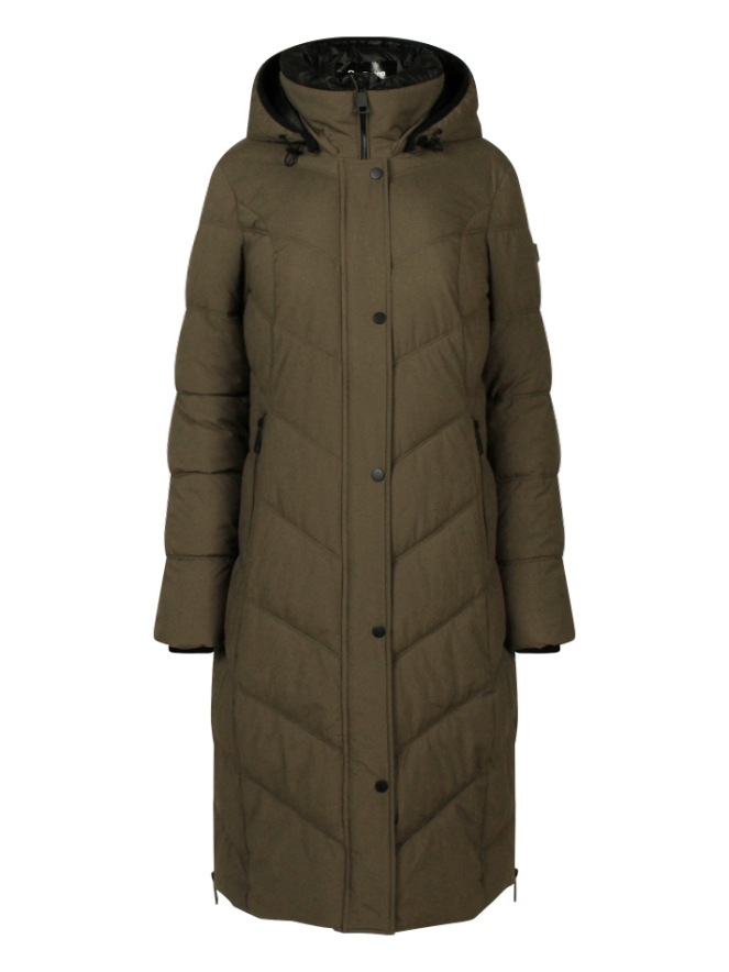 Dit is weer een heerlijke lange jas. Ideaal voor wandelingen want met de ritsen in de zij heb jij geen tocht aan de voor en achterkant maar wel heel veel bewegingsvrijheid. Kruip op een gure dag lekker weg in de hoog sluitende hals en trek de capuchon over je hoofd. Mag je haar niet in de war? Dan haal je die capuchon er in een handomdraai af met een paar eenvoudige drukknopen.