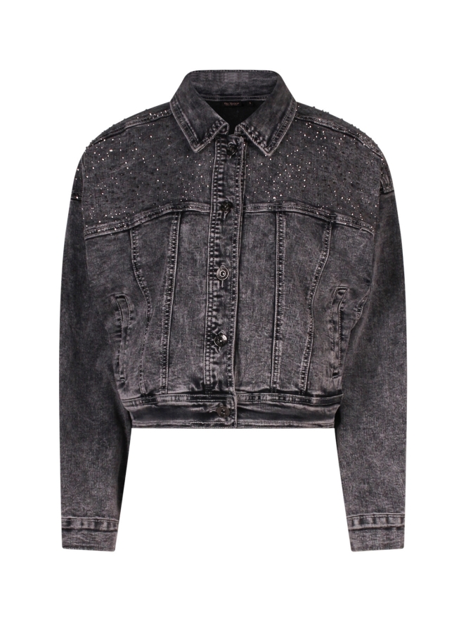Dit denim jack voor dames heeft een boxy fit en is voorzien van strasssteentjes voor een sprankelende look. Het jack heeft elastiek aan de achterkant van de tailleband voor een comfortabele pasvorm en is perfect om een casual outfit net dat beetje extra te geven.