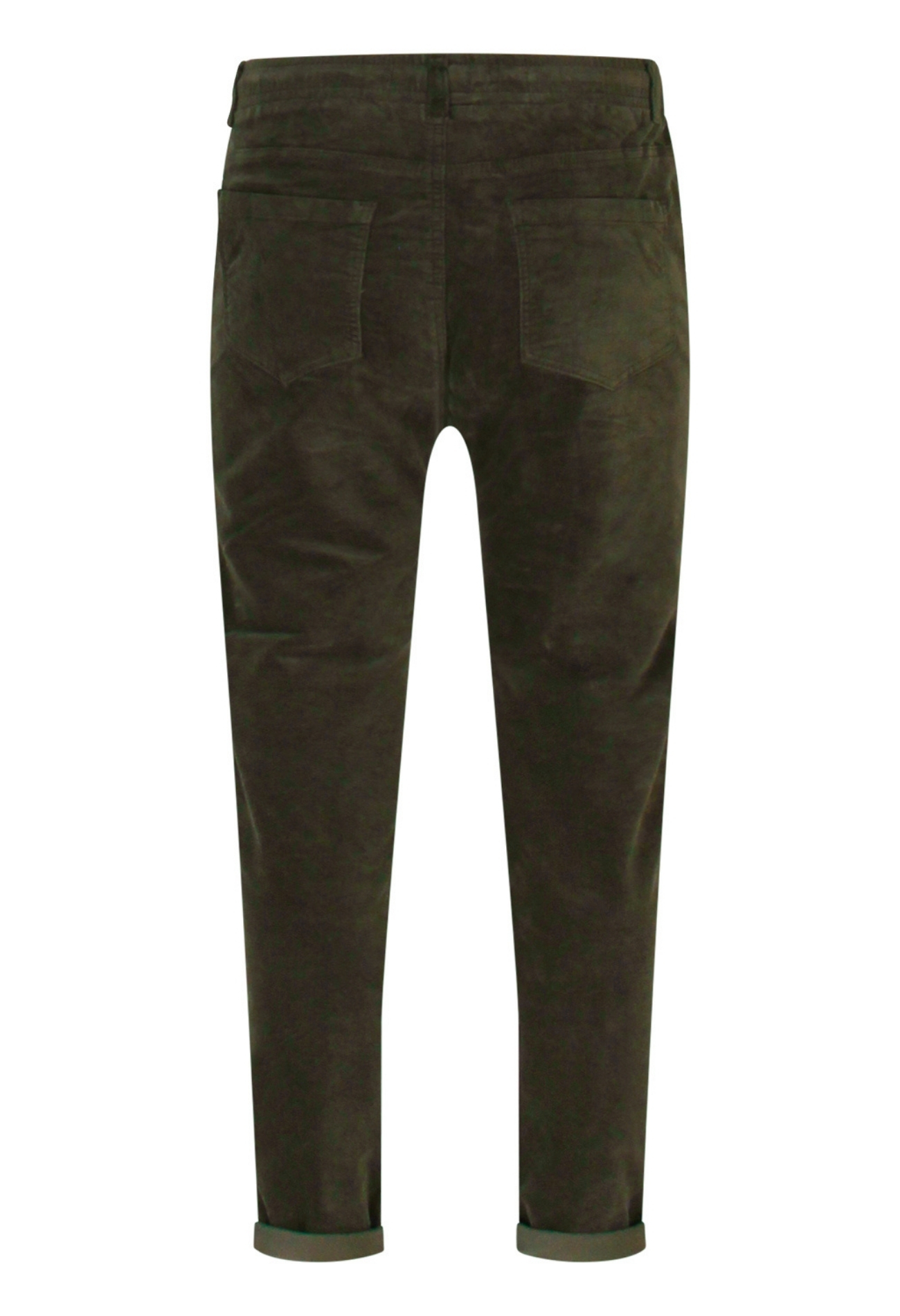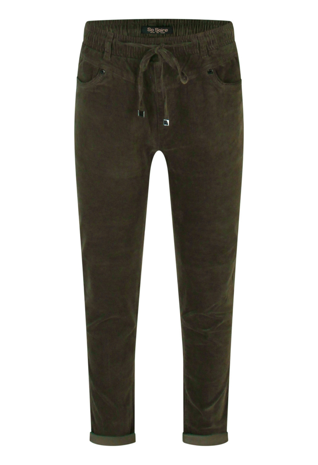Deze broek is echt even anders! Super zacht door de velvet, gewoon 4 zakken maar wel een wijde pijp. Met een elastische tailleband met een koordje. Combineer met een nette blouse voor een nette afgeklede look. Style het sportief af door de broek onderaan om te slaan en draag er een sneaker onder.
