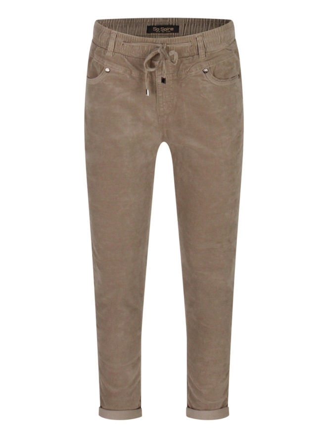 Deze broek is echt even anders! Super zacht door de velvet, gewoon 4 zakken maar wel een wijde pijp. Met een elastische tailleband met een koordje. Combineer met een nette blouse voor een nette afgeklede look. Style het sportief af door de broek onderaan om te slaan en draag er een sneaker onder.