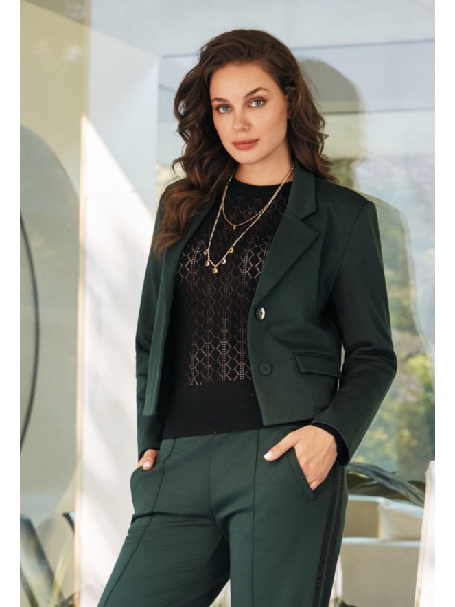Leuke blazer met klepzakken en een mooi streepdetail in de zij. Deze blazer is een kort modelletje en niet getailleerd. Hou je van matchy pakken? Een bijpassende broek met hetzelfde streepdetail vind je onder art.nr. W10372. Stoer sportief pak!
