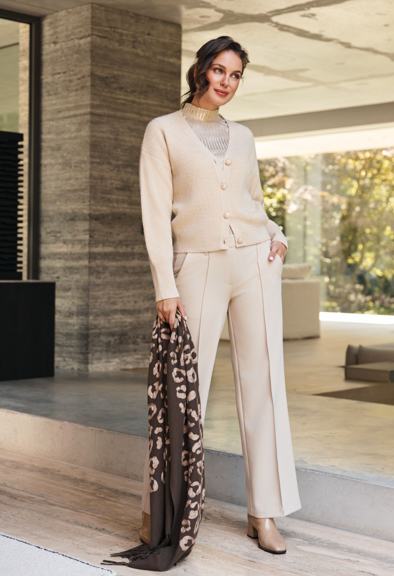 Deze damespantalon combineert comfort met een nette, moderne look! De opnaad aan de voorkant geeft de broek een scherp en gestroomlijnd effect, terwijl de rechte pijpen zorgen voor een tijdloos silhouet. Dankzij het elastiek aan de achterkant van de tailleband zit de pantalon extra comfortabel en sluit hij mooi aan.