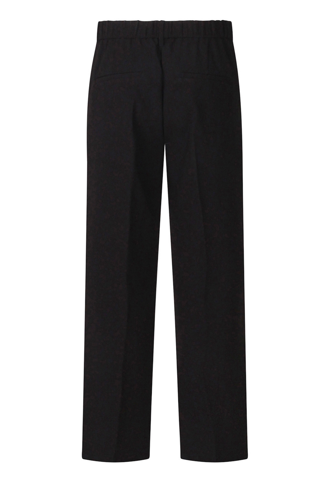 Deze damespantalon combineert comfort met een nette, moderne look! De opnaad aan de voorkant geeft de broek een scherp en gestroomlijnd effect, terwijl de rechte pijpen zorgen voor een tijdloos silhouet. Dankzij het elastiek aan de achterkant van de tailleband zit de pantalon extra comfortabel en sluit hij mooi aan.