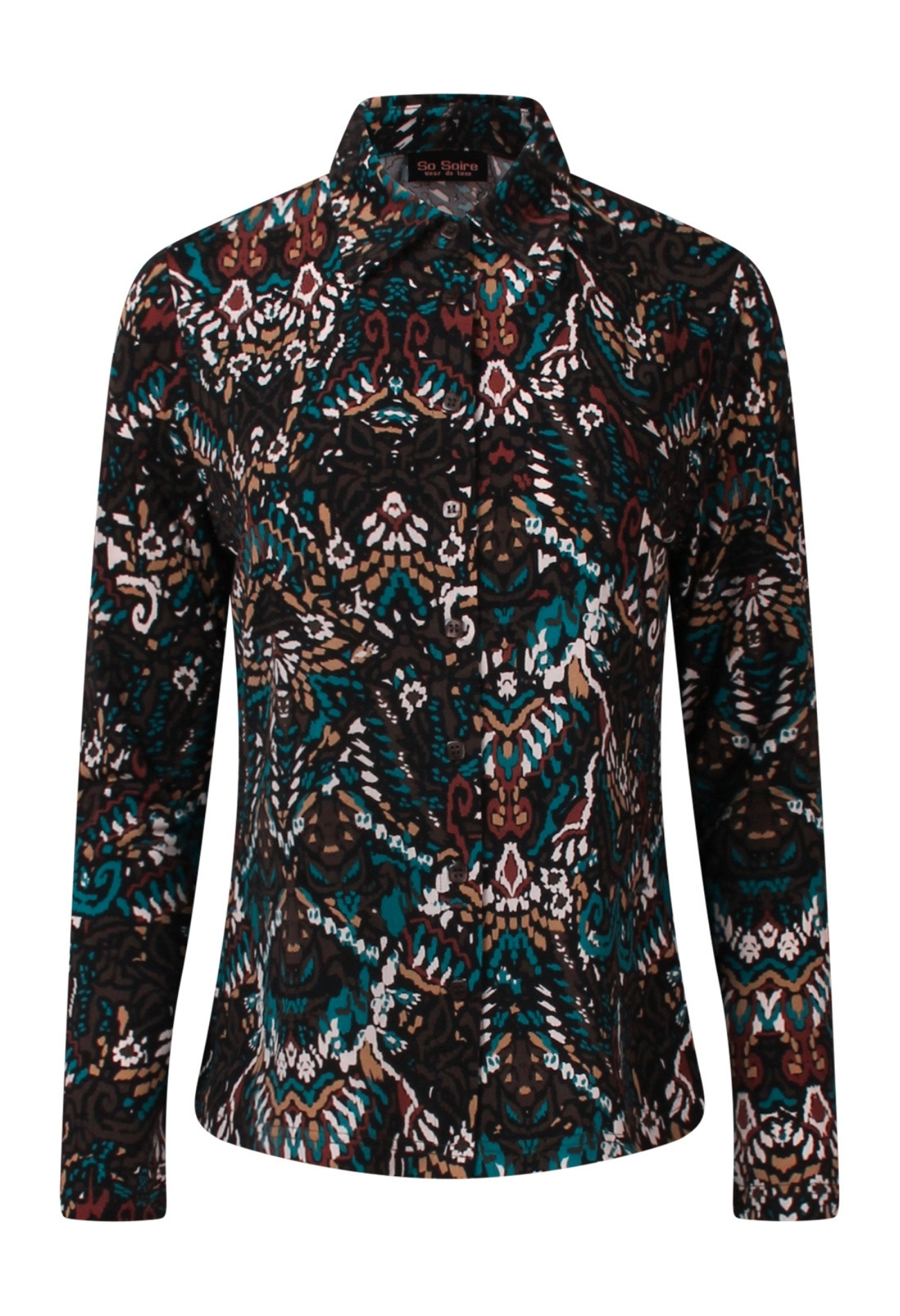 Deze soepel vallende blouse van jersey katoen heeft een meerkleurig design.