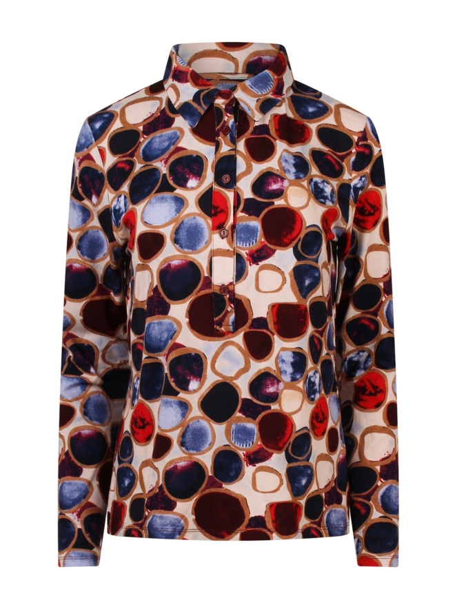 Mooie blouse van tricot in een opvallend bollendesign voelt zacht aan en valt soepeltjes. Een item dat makkelijk te combineren is met jeans en nette pantalons.