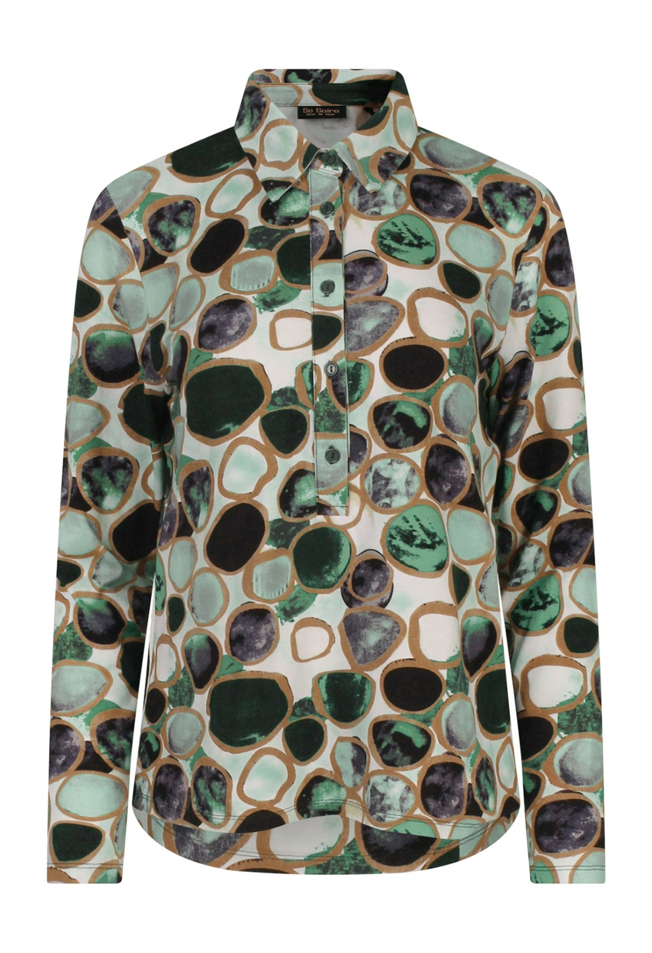 Mooie blouse van tricot in een opvallend bollendesign voelt zacht aan en valt soepeltjes. Een item dat makkelijk te combineren is met jeans en nette pantalons.